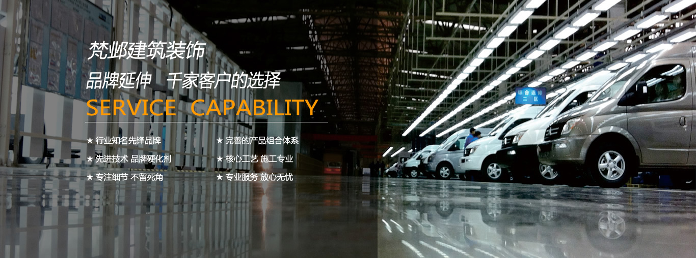 無錫梵鄴建筑裝飾有限公司產(chǎn)品主要分為:混凝土密封固化劑、環(huán)氧樹脂、耐磨硬化等工業(yè)、商業(yè)地面的表面處理。公司提供:環(huán)氧地坪、固化地坪、耐磨硬化地坪、工廠地坪、車庫地坪、倉庫地坪、地坪改造、水磨石硬化地坪等工程服務(wù)。經(jīng)過努力,公司積累了豐富的工程現(xiàn)場運行管理及施工經(jīng)驗,融匯了先進的管理理念及服務(wù)模式,形成強大的工程配套服務(wù)優(yōu)勢,做出了優(yōu)異的工程業(yè)績。